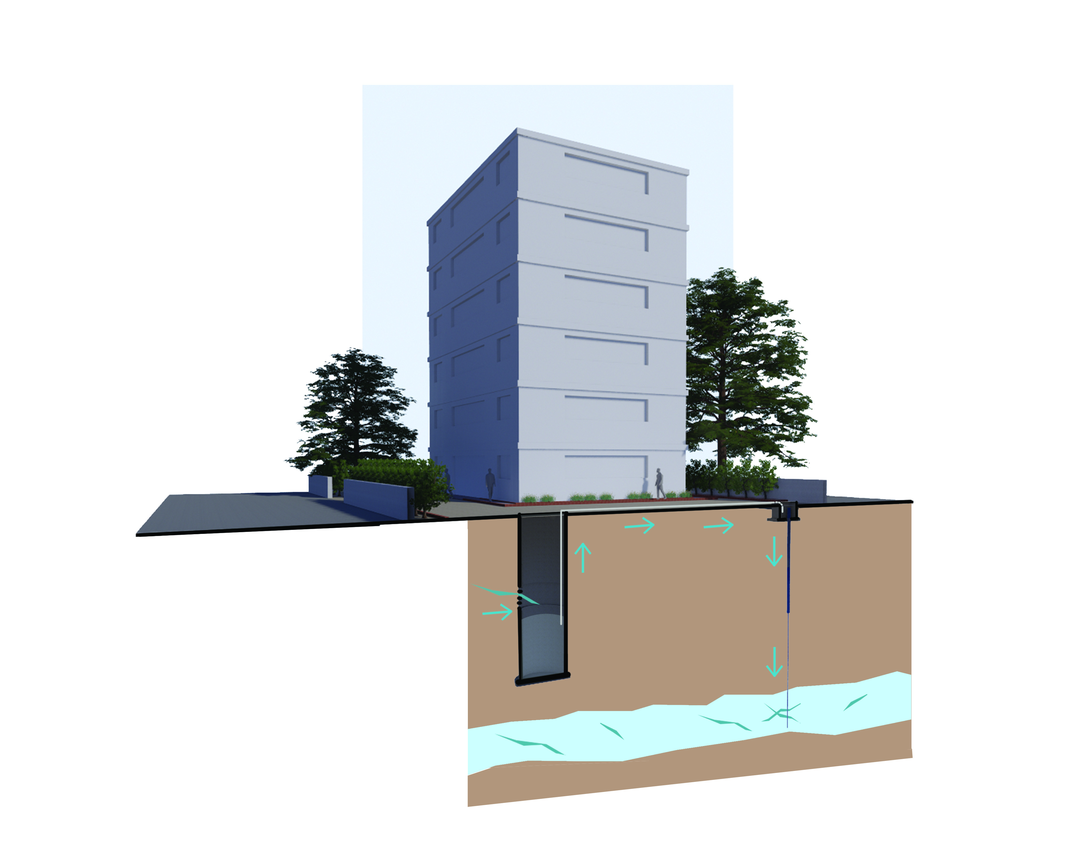 Immediately after stopping the pump the seepage water will automatically start flowing from the collection well to the borewell.